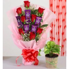 Product Details :10 Red Rose Cellophane Packing Bunch + 5 Dairy Milk Chocolate ( 1..